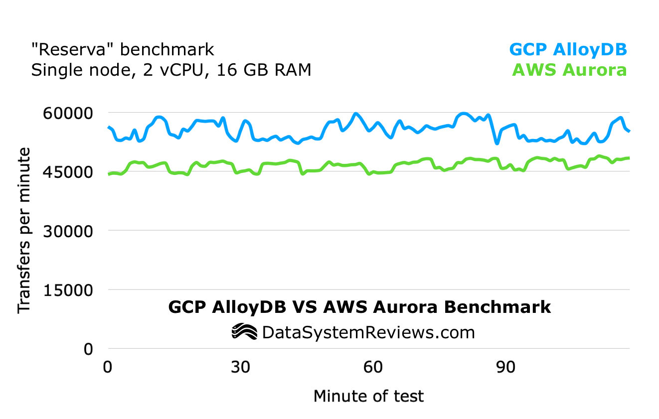 As you can see, AlloyDB was faster overall, and there didn’t seem to be any convergence happening.